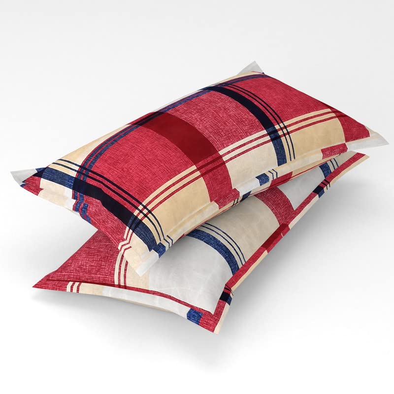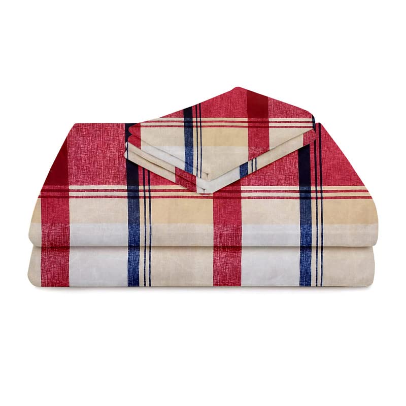 BSB HOME 120 TC Double Abstract Printed Bedsheet with 2 Pillow Covers | 110 GSM Soft Brushed Microfiber – Breathable & Wrinkle Free – (86 X 88 Inch, Blue & Red)