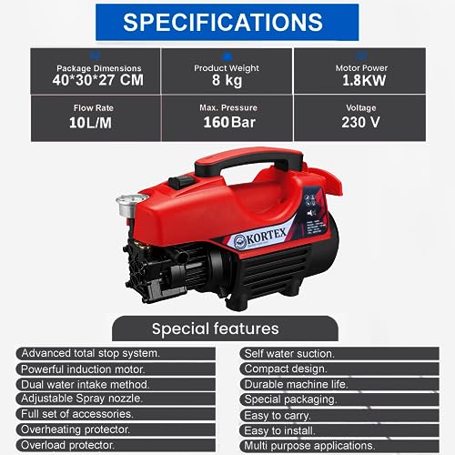 Kortex R5 High Pressure Car Washer Machine Motive Power 1800 watt and Pressure 160 bar. (Updated Model)…